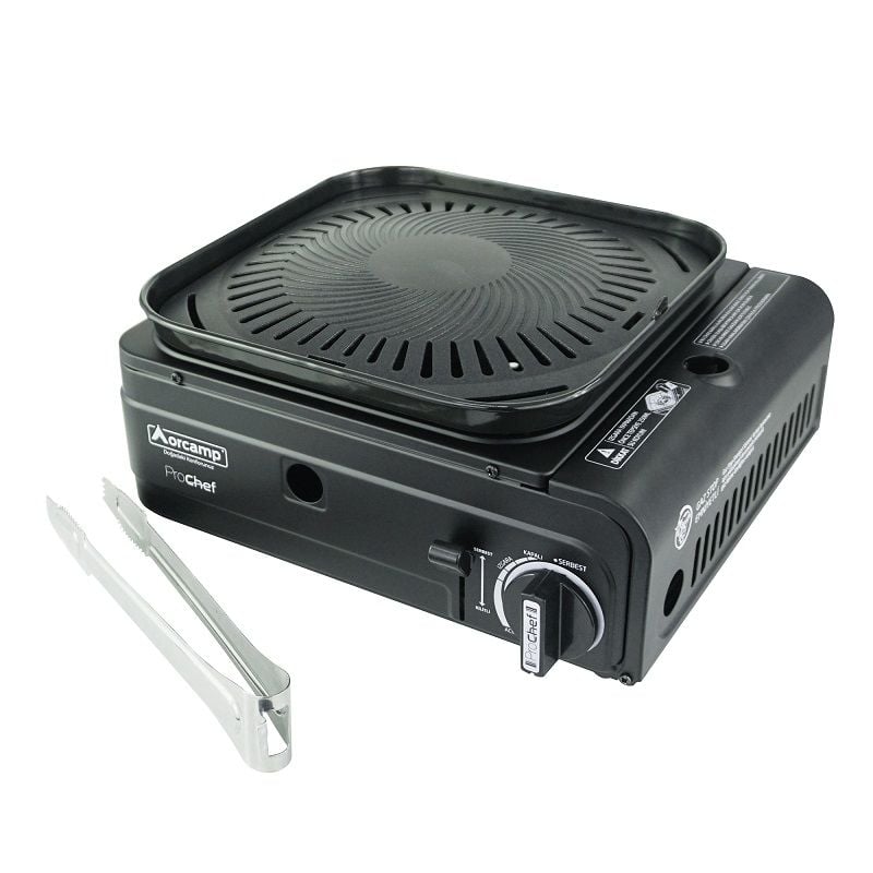 Orcamp Pro Chef Kare yapısı, pişirme alanını artırmaya ekstra olarak yardımcı olurken %50 gaz tasarrufu sağlar. Dumansız ızgaranın özel üretilmiş teflon ızgara ve profil yapısı, fazla yağı süzdüren kanalları ile daha etkili ve lezzetli pişirme olanakları sağlar. Gaz Stop emniyetli yapısı sayesinde kartuş gazında oluşabilecek ani basınç durumunda bunu fark edip kendini otomatik durdurur ve kilitler. Brülörün içeri gömük yapısı sayesinde süper rüzgâr kırıcı özellik sağlar, rüzgârın oluşturabileceği enerji düşüklüğünü ortadan kaldırır. Izgara, maşalı ve taşıma çantalıdır. 1,5 lt suyu 10 dakikada kaynatabilir. Gıda hijyeni ve kolaylığı sağlar; hızlıca sökülüp yıkanabilir. Pişirme öncesi 250 ml su konulması gerekmektedir.