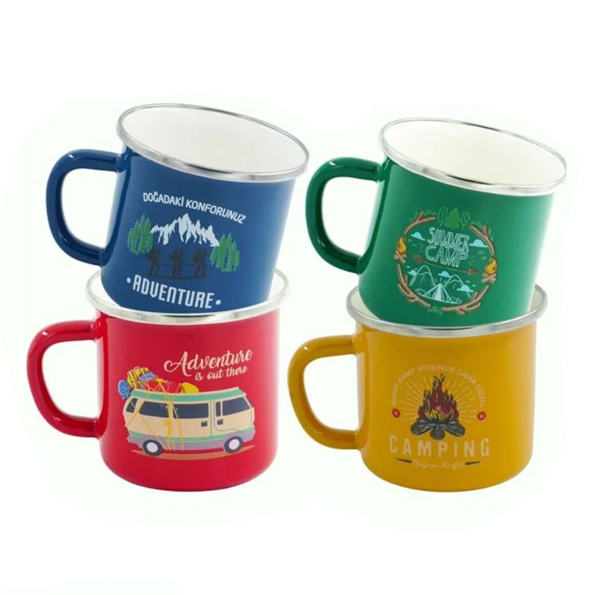 Doğa ile özdeşleşmiş renklerin kullanıldığı Orcamp kupa bardaklar, emaye'den üretilmiş olup yiyecek ve içecek hazırlanabilmesi için uygundur.